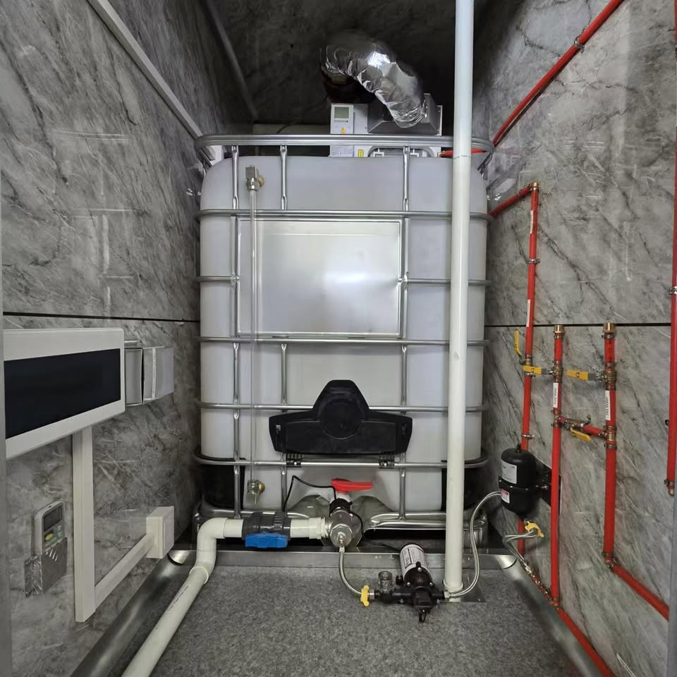 - Modern Fixtures: Cabinet, Sink, Dispensers